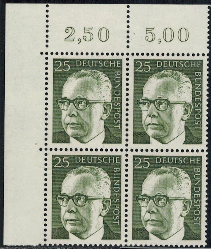 Bund 689 Eckrand 4-er Block links oben postfrisch