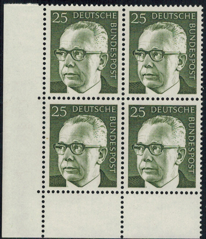 Bund 689 Eckrand 4-er Block links unten postfrisch