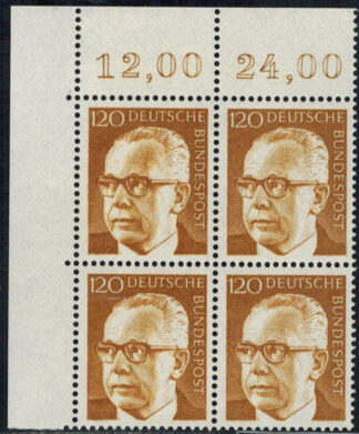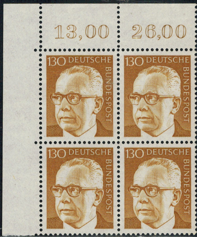 Bund 729 Eckrand 4-er Block links oben postfrisch