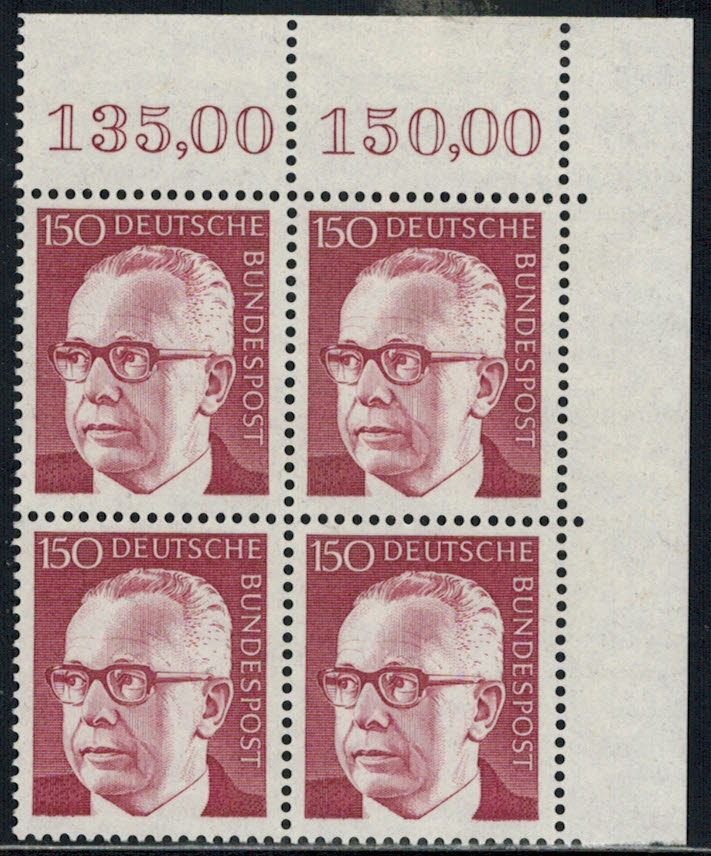 Bund 730 Eckrand 4-er Block rechts oben postfrisch, unbeschriftet !