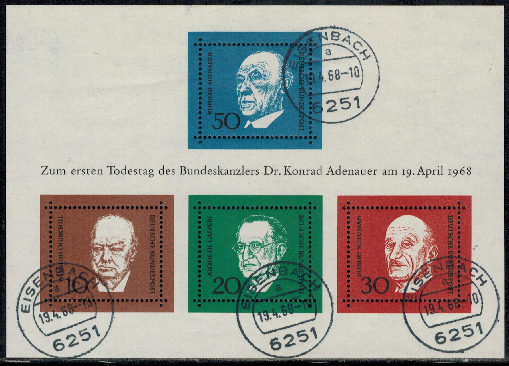 Bund Block 04 Ersttagstagesstempel „Eisenbach 19.4.68“ !