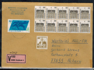 Bund 1399 2-Fünferstreifen als MeF auf portogerechten Einschreibenbrief !!