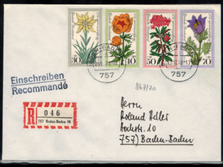 Bund 0867 - 870 kompletter Satz als MiF auf portogerechtem Einschreibenbrief