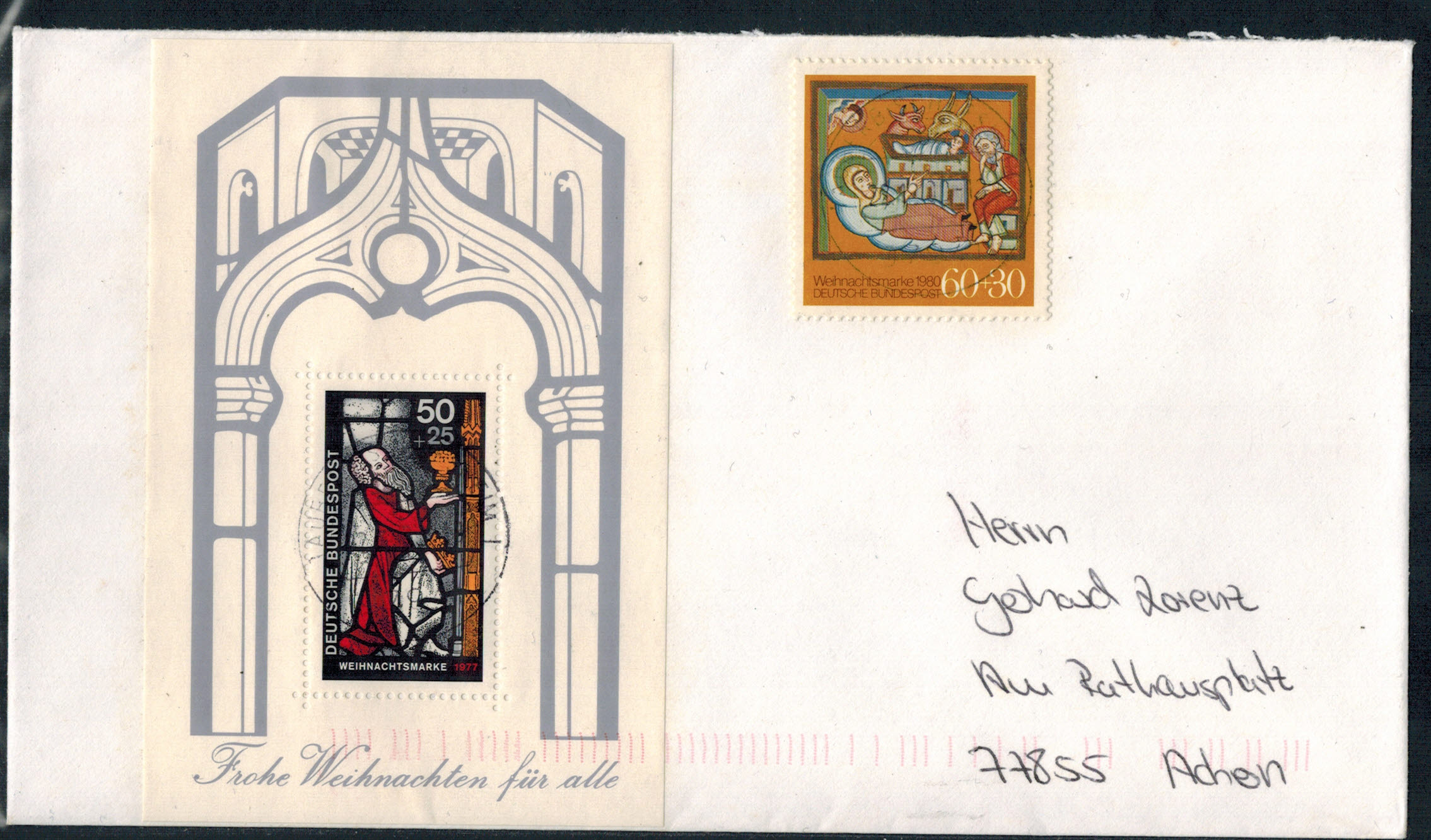 Bund 1. ATM „ohne Werteindruck“ + ein 4-er Block 1446 + ein OR-Paar 1446 + EZM 1611 auf Brief