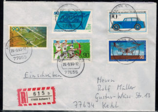 Bund 1008 nur 90 Pf.-Werte als MiF auf portogerechtem Einschreibenbrief !