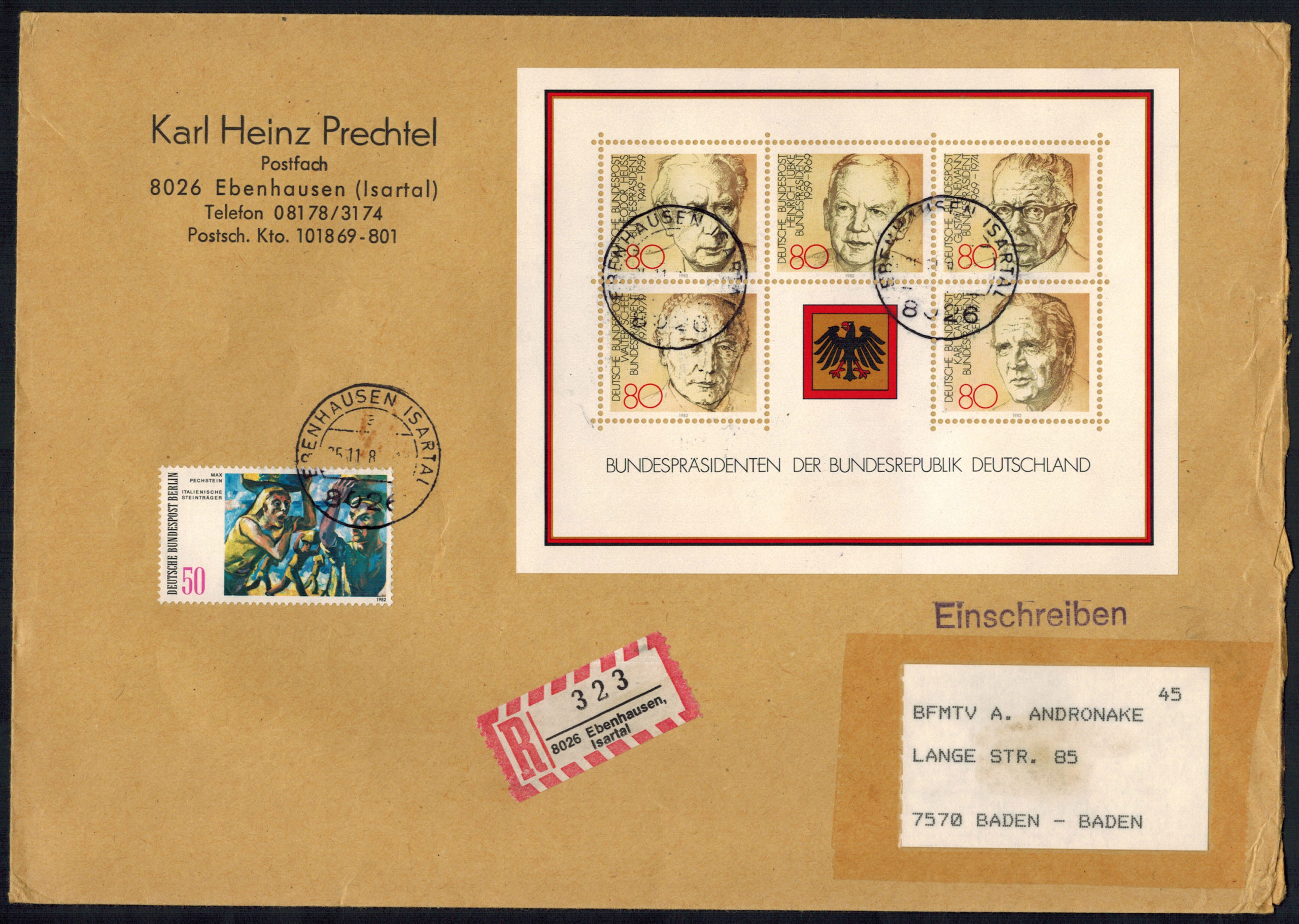 Bund Block 18 als MiF auf portogerechtem Einschreibenbrief !