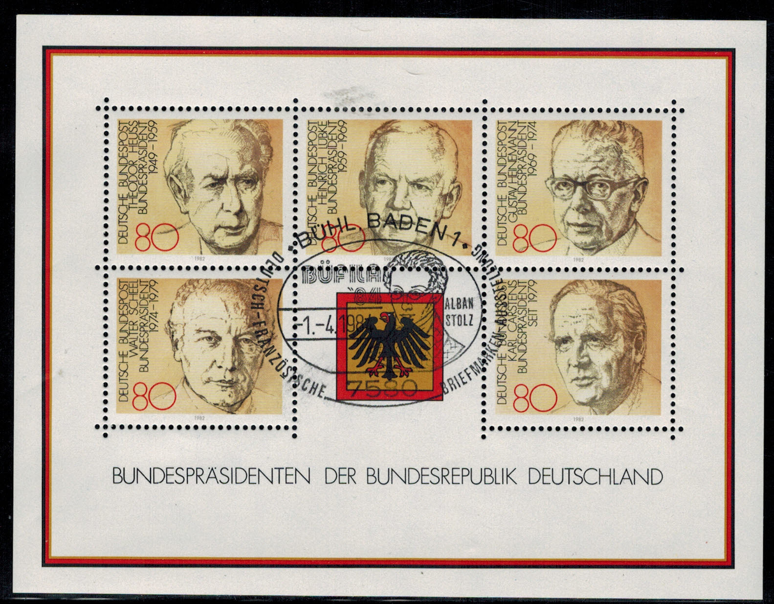 Bund Block 18 mit Sonderstempel „Bühl 1.4.1984“
