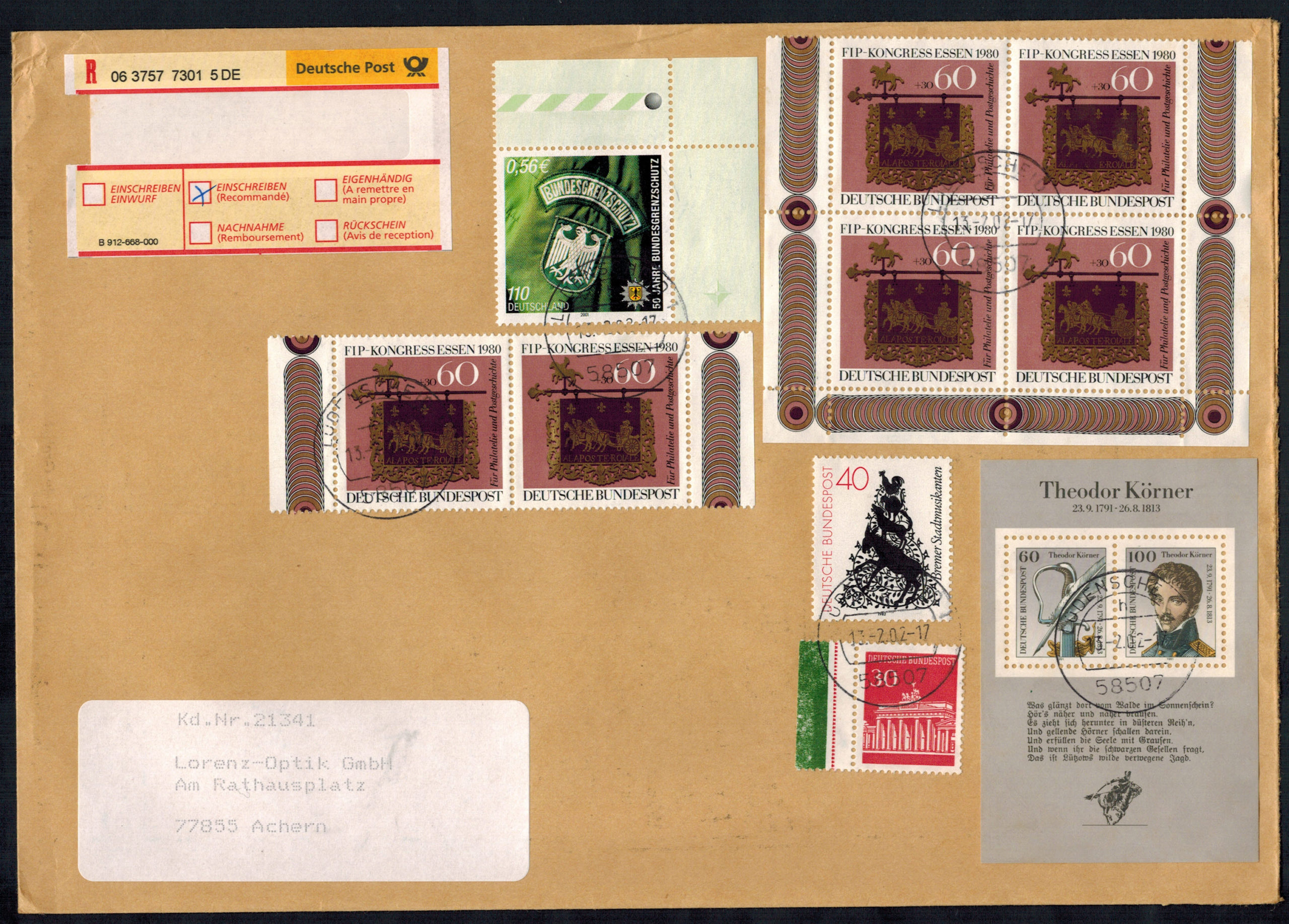 Bund Block 08 als MiF auf portogerechtem Einschreibenbrief !