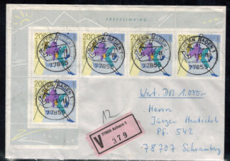 Bund 1399 2-Fünferstreifen als MeF auf portogerechten Einschreibenbrief !!