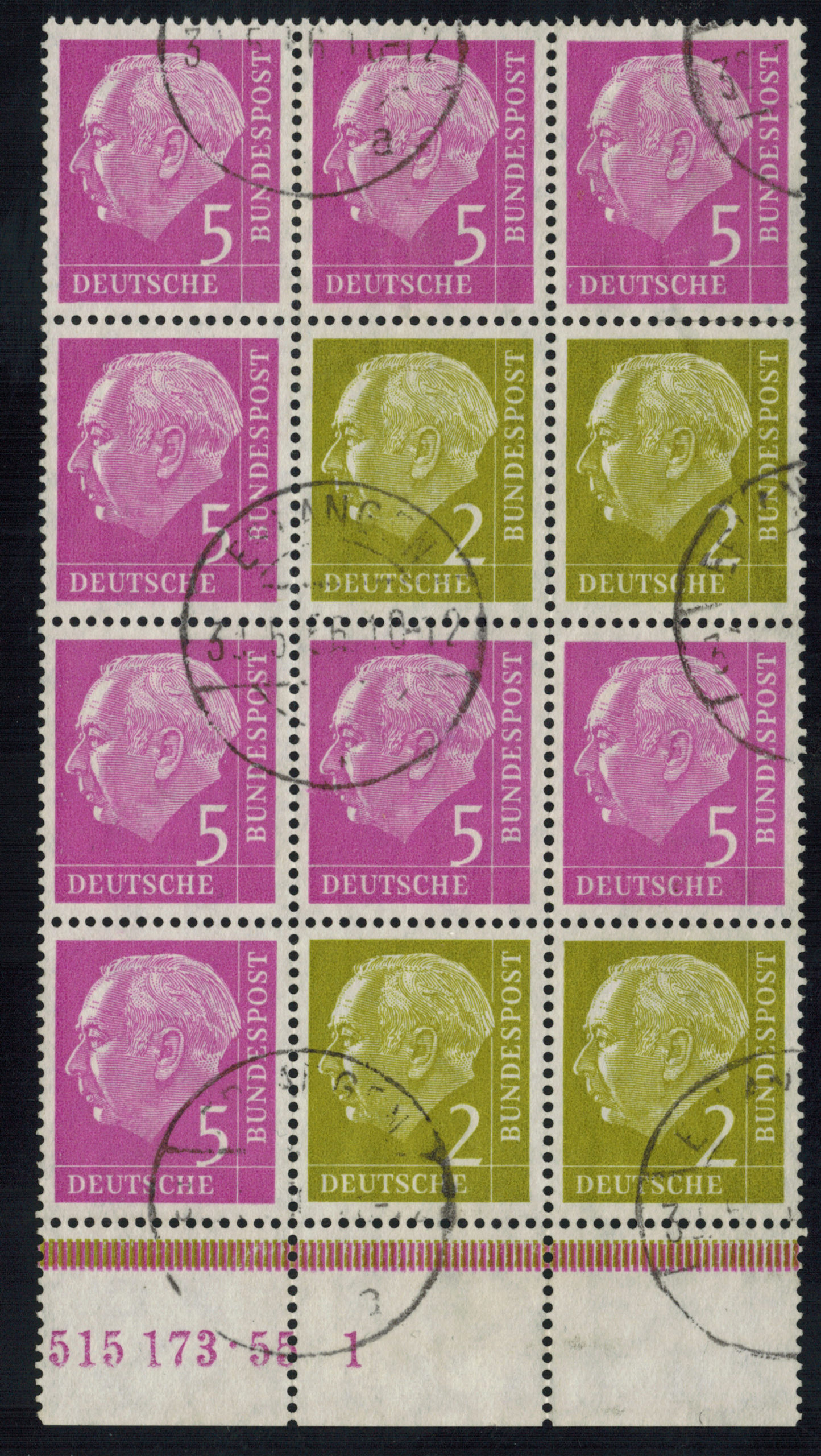 Bund 182 w HAN 815233 2 im 80er Bogenteil mit „unterbrochener Strichelleiste“