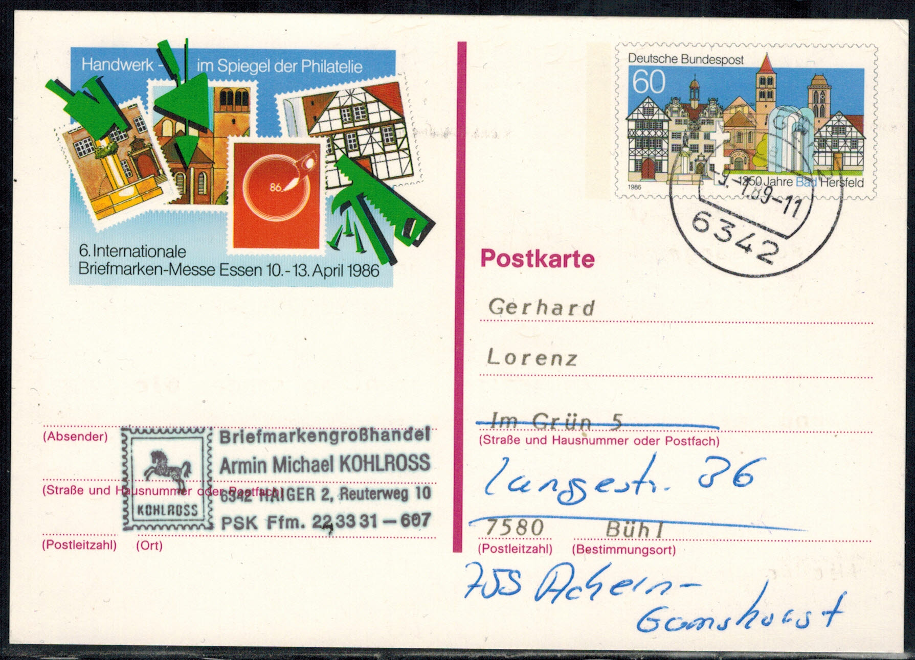 P 155 II echt gelaufen als Einschreiben mit den Marken 1449 OR + UR, 1450 OR + UR vom Ersttag !!!